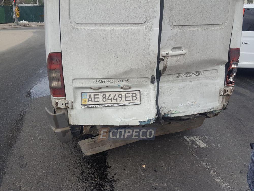 На светофоре, где остановились автомобили, автоугонщик протаранил Mercedes Sprinter, который, в свою очередь, врезался в Daewoo Lanos.