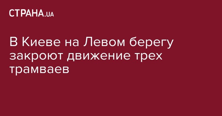 Во вторник, 17 апреля, в Киеве закрывается движение трех трамвайных маршрутов, которые курсируют на Левом берегу. Об этом сообщает пресс-служба "Киевпастранса".
