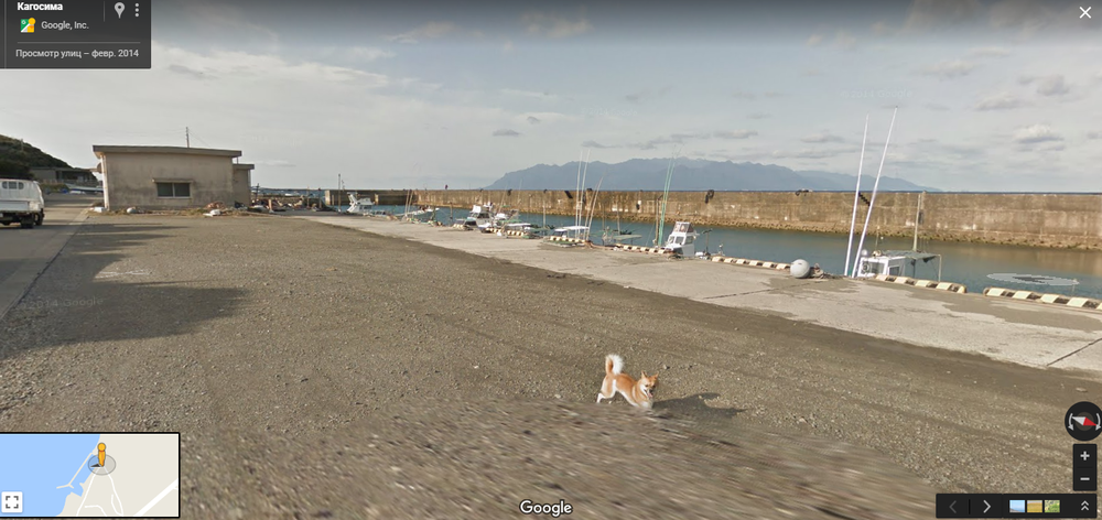 В японской префектуре Кагосима обычная собака погналась за машиной, которая снимала улицы для интернет-сервиса Google Street View.