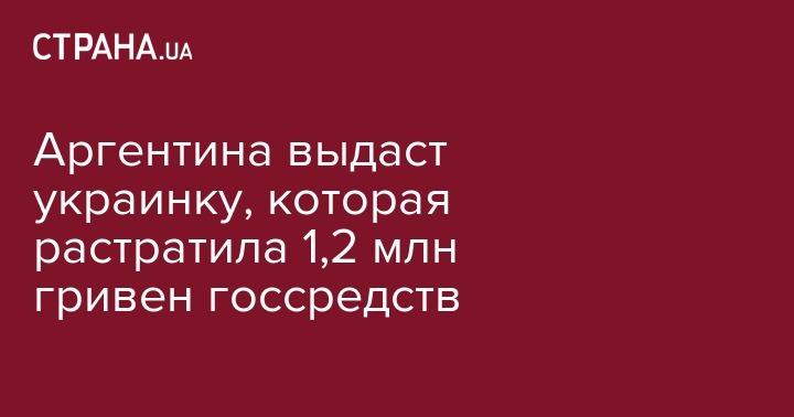 "Благодаря результативному сотрудничеству Генеральной прокуратуры Украины и Национальной полиции Украины, Министерством иностранных дел и вероисповеданий Аргентинской Республики удовлетворен запрос о выдаче гражданки Украины для привлечения к уголовной ответственности за растрату средств государственного предприятия на общую сумму около 1 млн 200 тыс. грн", - сообщила пресс-служба.