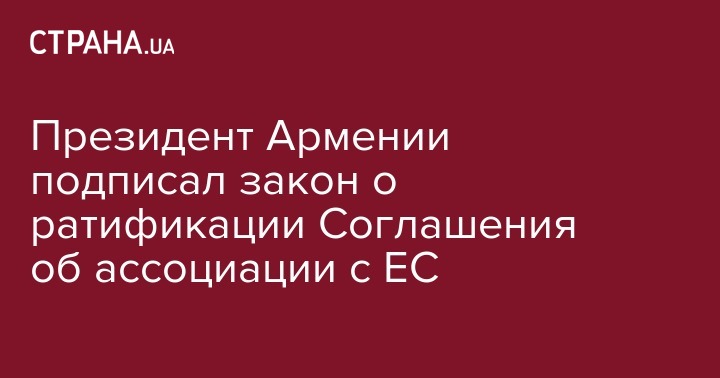 Президент Армении Армен Саркисян подписал закон о ратификации Соглашения о всеобъемлющем и расширенном партнерстве между Арменией и ЕС, а также Европейским сообществом по атомной энергии и странами-членами данной организации.