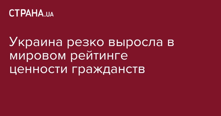 Украина заняла 80-е место в рейтинге самых привлекательных гражданств, поднявшись за год на рекордные 19 позиций благодаря введению безвизового режима со странами Евросоюза.