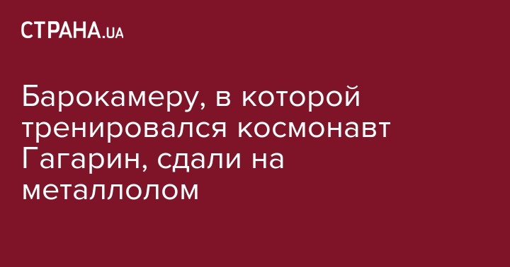 В Москве задержали подозреваемых в краже барокамеры, в которой тренировался  Юрий Гагарин и другие космонавты.