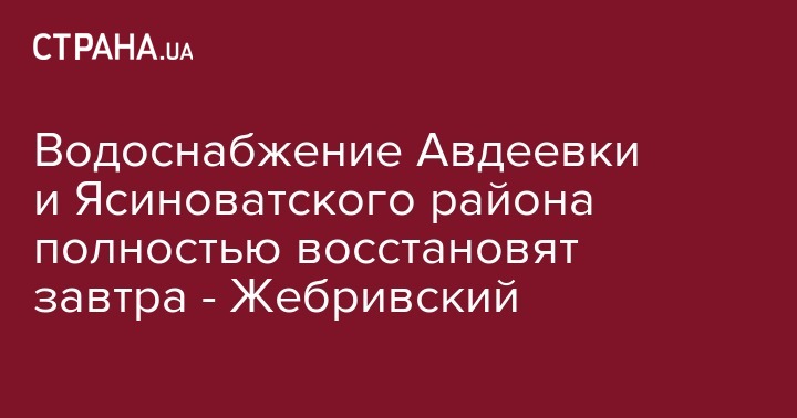 Водоснабжение Авдеевки и Ясиноватского района полностью восстановят завтра - Жебривский