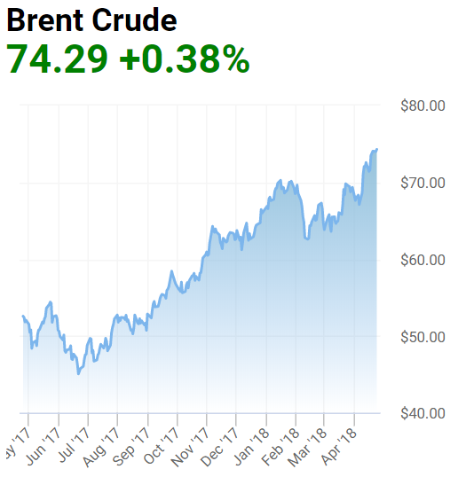 Похожая динамика и у других нефтяных марок. Рост цен начал почти непрерывно восстанавливаться летом 2017 года. И с небольшими перебоями весной вошел в период рекордных показателей.