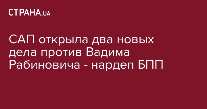 Специализированная антикоррупционная прокуратура открыла два новых уголовных производства против народного депутата Вадима Рабиновича, расследование поручено НАБУ. Об этом на своей странице в Facebook написал народный депутат Сергей Каплин (БПП).
