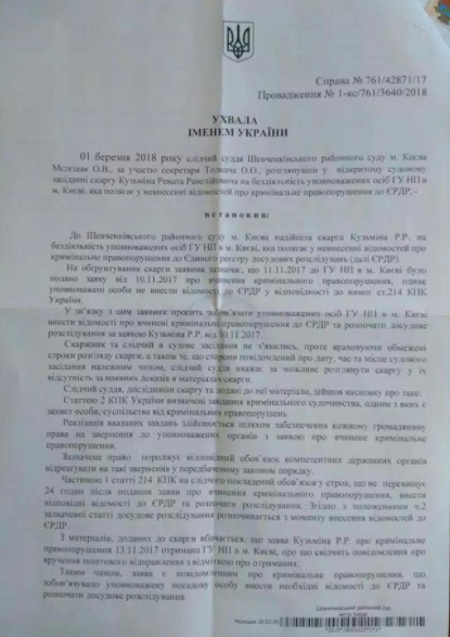 "Возбуждено новое дело против Порошенко. Уже десятое… Публикую еще одно определение суда. В этот раз о необходимости расследовать дело по факту создания преступной организации с целью уклонения от уплаты налогов и сборов в интересах действующего президента Порошенко. Следователям предстоит выяснить, создал ли эту преступную организацию сам гарант конституции или это сделали для него его "любi друзi", а он типа ничего не знал и не ведал", - написал Кузьмин.