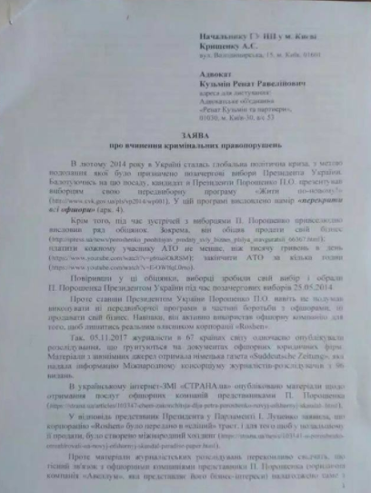 Экс-заместитель генпрокурора Ренат Кузьмин сообщил, что украинский суд обязал правоохранительные органы возбудить уголовное дело в отношении президента Петра Порошенко в связи с созданием преступной организации для уклонения от уплаты налогов.