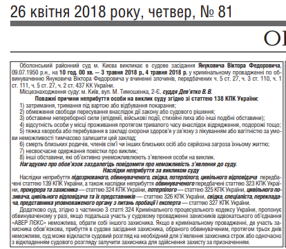 Оболонский райсуд Киева вызвал экс-президента Виктора Януковича на заседание 3-4 мая по делу о госизмене.