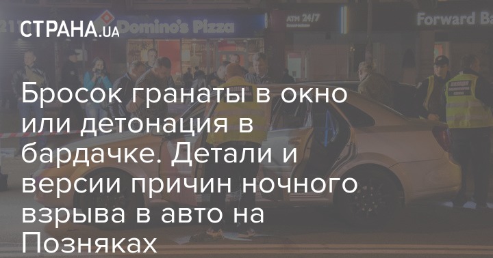 Вечером 27 апреля в Дарницком районе столицы произошло ЧП. У парка "Позняки" прямо по ходу движения в салоне автомобиля Chevrolet Lacetti взорвалась граната. В результате инцидента скончался пассажир, а водитель машины с многочисленными травмами был доставлен в больницу.