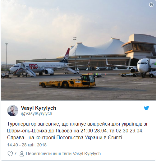 Туроператор планирует авиарейсы для украинцев из Шарм-эль-Шейха во Львов на 21:00 и 2:30 в ночь с 28 по 29 апреля.