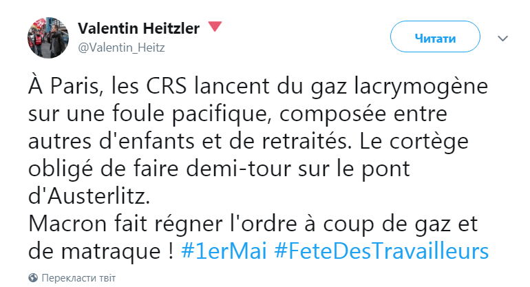 Во вторник, 1 мая в Париже начались беспорядки на массовом праздновании Международного дня трудящихся. Об этом сообщает BFM.