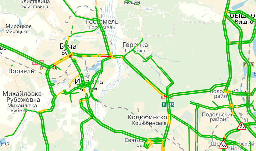 Вечером праздничного вторника, 1 мая, на въезде в Киев, со стороны Бучи и Ирпеня, образовался километровый автомобильный затор.