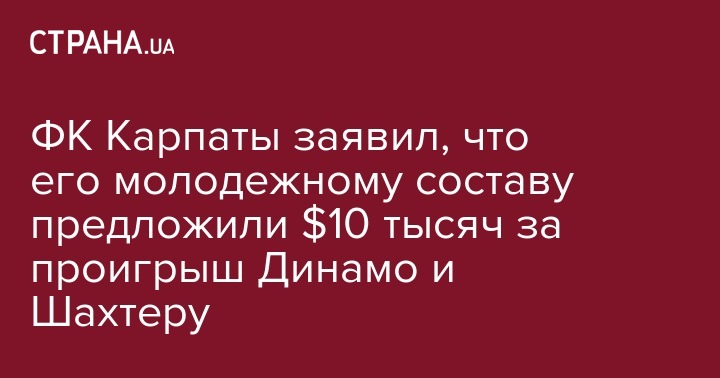 В сообщении не указаны названия футбольных клубов, однако представители ФК Карпаты подтвердили, что была попытка подкупа игроков молодежной команды, сообщает ZAXID.NET.