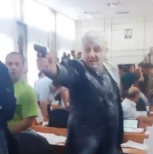 Появились фото со скандальной сессии горсовета в Никополе, где стреляли и обливались зеленкой