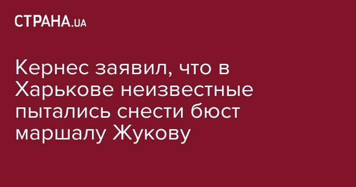 Мэр Харькова Геннадий Кернес заявил, что в ночь на 6 мая в Харькове неизвестные попытались снести бюст маршала СССР Георгия Жукова.