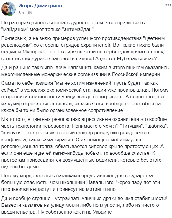 "Не раз приходилось слышать дурость о том, что справиться с "майданом" может только "антимайдан".