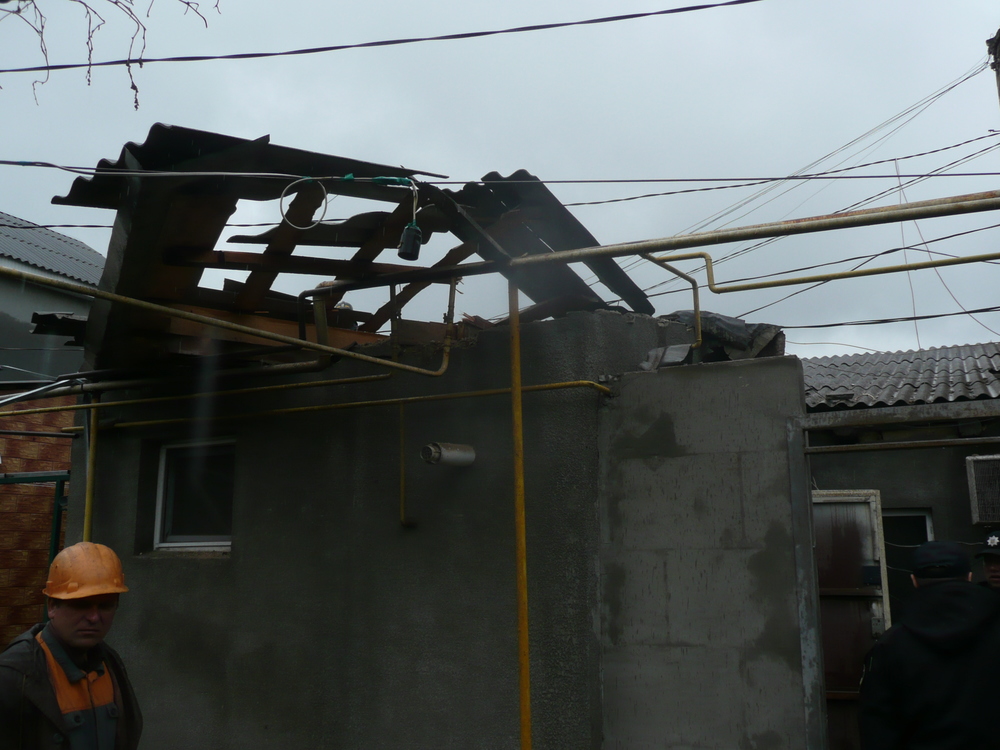 Из-за взрыва частично разрушилась крыша квартиры и сместились несущие балки на площади 15 квадратных метров. Также поврежден шифер на крышах других квартир. Несущие стены не повреждены.