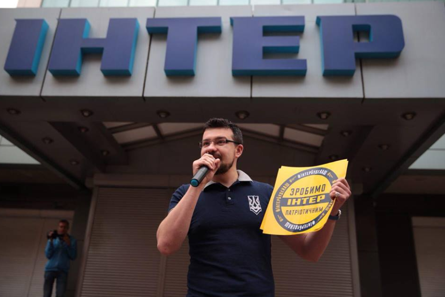 Утром, 9 мая, под стены здания телеканала "Интер" пришли представители ультраправой партии "Национальный корпус" Андрея Билецкого.