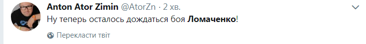 "Хорошо, что так. Хорошо, что встал, собрался и довел дело до конца. Традиционно огромное спасибо всей моей команде. [...] Все хорошо, что хорошо кончается", заключил Ломаченко, завершив свою импровизированную пресс-конференцию словами благодарности болельщикам и семье.