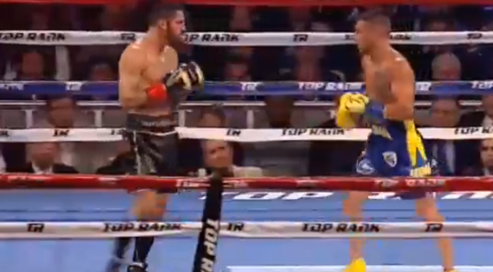 6-й раунд. Ломаченко побывал в нокдауне, пропустив сильный удар Линареса в подбородок. Попробовал развернуть ход боя венесуэлец, но быстро встал и продолжил поединок наш спортсмен.
