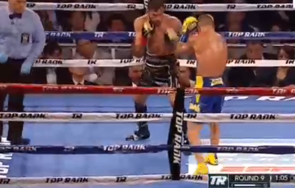 10-й раунд. Василий Ломаченко провел в соперника апперкот, серию боковых ударов и решающий - мощный "выстрел" под локоть. Лимарес ОТПРАВЛЕН В НОКАУТ!