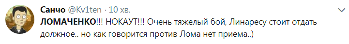 Красивый бой показали спортсмены. Поздравляем Василия Ломаченко! Заслуживает уважения и Хорхе Линарес. Он сделал всё, что мог.