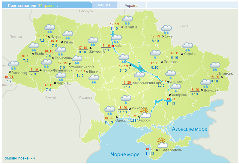 Во вторник, 15 мая, в Украине также продлится дождливая погода с грозами. Ливни пройдут в основном в западных и восточных регионах.