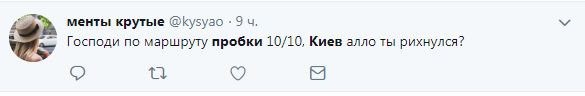 Эмоции водителей сегодня утром просто зашкаливали. "По маршруту пробки 10 из 10. Киев, алло, ты рехнулся?" – писали пользователи в Twitter.