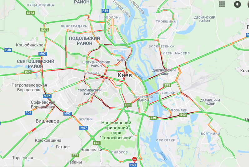 Из-за ДТП движение затруднено в районе станции метро "Академгородок" на проспекте Академика Паладина. Также в Святошинском районе тянучка около станций метро "Житомирская" и "Святошин", в районе Софиевская Борщаговка также пробка.