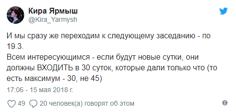 Сразу после вынесения решения судья перешел к рассмотрению дела о неповиновении полиции. По нему Навальному грозит арест до 15 суток, однако, как пояснила его пресс-секретарь Кира Ярмыш, наказания в любом случае не будут суммироваться.