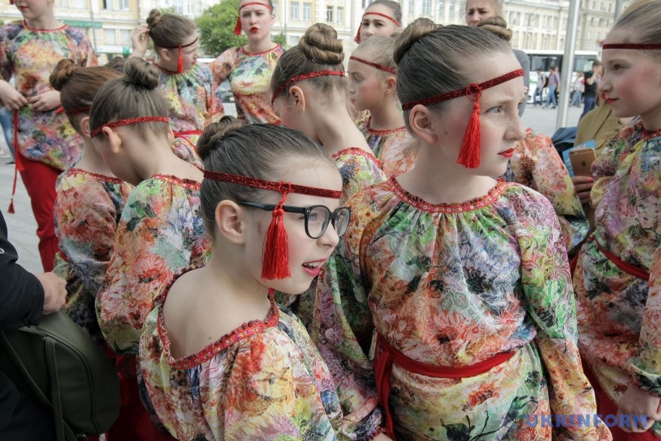 Затем колонна в вышиванках направилась по центру города на площадь Свободы, где также состоится концерт.