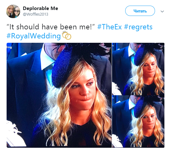 Среди приглашенных на свадьбу принца Гарри и Меган Маркл оказалась его бывшая девушка Челси Дэви. Пользователи Сети обратили внимание на выражение ее лица во время церемонии и тут же высмеяли его.