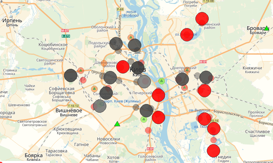 Самыми загрязненными территориями стали площади Победы, Бессарабская и Демеевская. Кроме них, проспекты Оболонский и Победы, бульвар Леси Украинки, улицы Довженко, Каунасская, Скляренко и Попудренко.