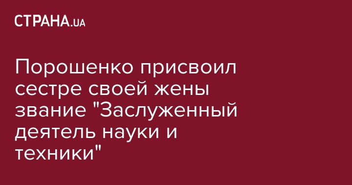 Порошенко присвоил сестре своей жены звание "Заслуженный деятель науки и техники"