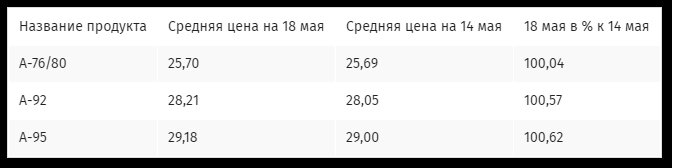 Розничные цены на бензин 14-18 мая, гривен/литр: