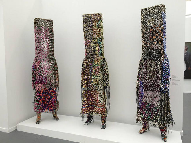 "В ход идут ветки, крашеные человеческие волосы, сизаль, искусственный мех, проволока, куклы, рога, блестки, пуговицы, перья и, в общем, любой мусор. Рассматривать их можно практически бесконечно. Но это не единственное их предназначение", - рассказывает Flashback.