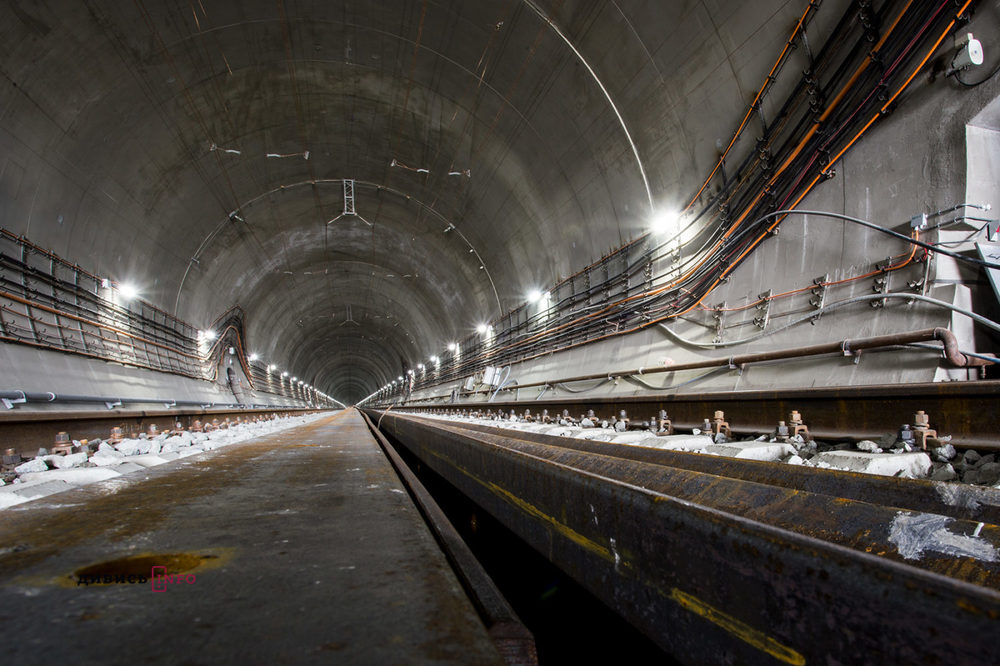 В отличие от первого такого тоннеля, здесь движение поездов возможно в обе стороны.