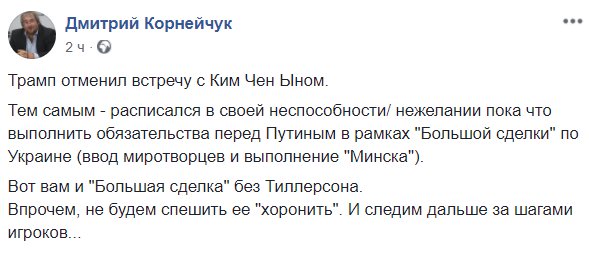 "Трамп отказался встречаться с Ким Чен Ыном. У того не нашлось 400 тыс.$!", - вторит ему блогер Кирилл Молчанов.