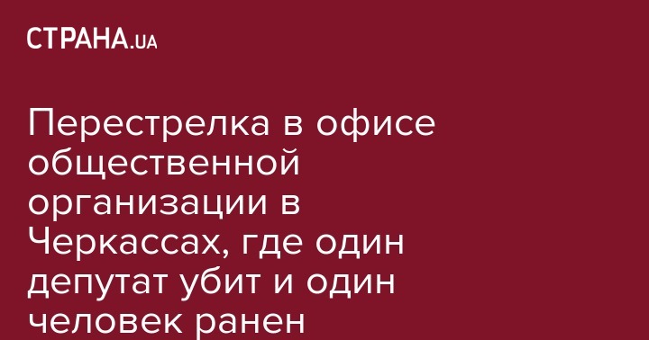 В Черкассах произошла стрельба в офисе общественной организации ВО "Черкащани", в ходе перестрелки погиб депутат областного совета, еще один человек получил ранение и был госпитализирован, сообщает телеканал "112 Украина".