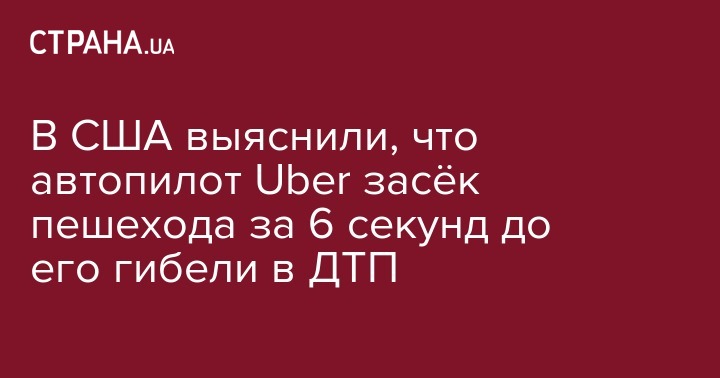 В США выяснили, что автопилот Uber засёк пешехода за 6 секунд до его гибели в ДТП