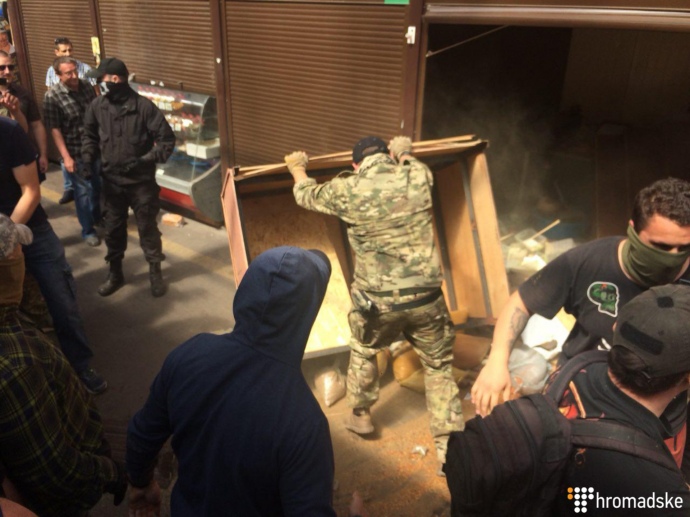 Сначала указывалось, что в погроме, принимали участие радикалы С14, которые начали громить киоски и ломать ролеты. Однако в С14 опровергли эти сообщения, и информация была исправлена.