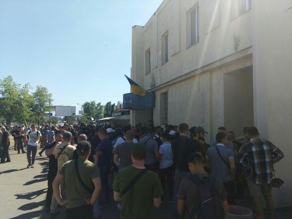 "Сейчас должен начаться суд над тремя участниками столкновений с полицией на столичном рынке "Лесная". У суда собрались националистические силы и обычные жители города в поддержку задержанных. Корреспондент насчитал около 150 человек, представляющих С14, "Национальный корпус", "Правый сектор", ОУН и атошники различных батальонов", - информирует издание.