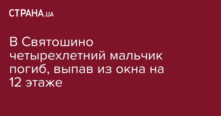 В Святошинском районе Киева 4-летний мальчик днем выпал из окна квартиры на 12-м этаже.