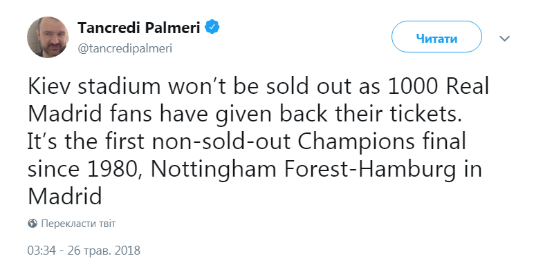 Часть болельщиков Реала сдали свои билеты из-за дорогих авиабилетов и цен в гостиницах Киева, а часть фанатов "Ливерпуля" не смогла добраться в Киев в день игры из-за отмены рейсов.