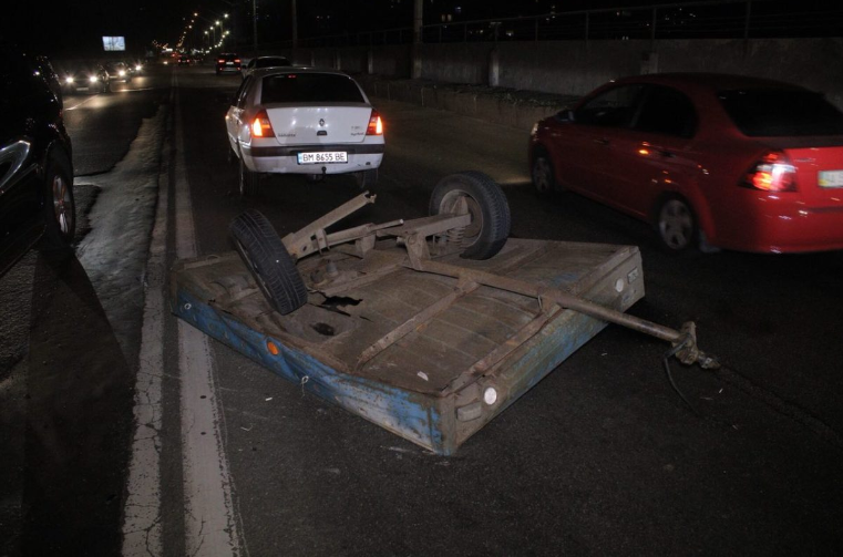 По словам водителя Volkswagen, он двигался в сторону центра, а Renault в сторону станции метро "Левобережная". В какой-то момент прицеп отцепился и вылетел на встречную полосу, где столкнулся с проезжавшим авто.