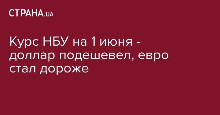 В пятницу, 1 июня, Нацбанк установил официальный курс гривны по отношению к иностранным валютам. По сравнению с предыдущим рабочим днем, доллар немного подешевел, а евро прибавил в цене.