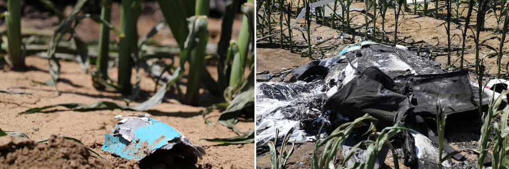 Самолет упал на кукурузное поле в полутора километрах от аэропорта Печ. На месте падения образовались выжженные участки диаметром от 5 до 10 метров.