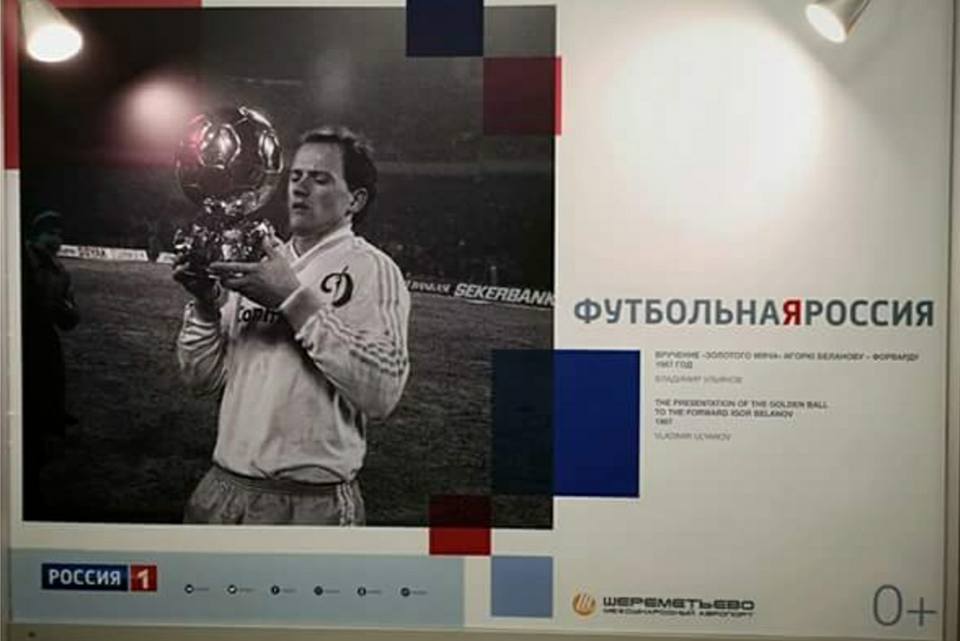 В московском аэропорту Шереметьево разместили плакаты с экс-игроками киевского Динамо Евгением Рудаковым (1960-е, 70-е) и Игорем Белановым (середина 80-х) - с надписью "Футбольная Россия".