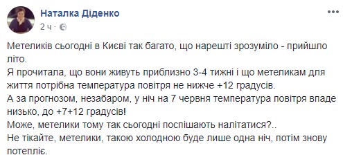 "Бабочек сегодня в Киеве так много, что наконец понятно - пришло лето.